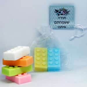 זוג סבוני לגו עם מדבקת מיתוג אישי