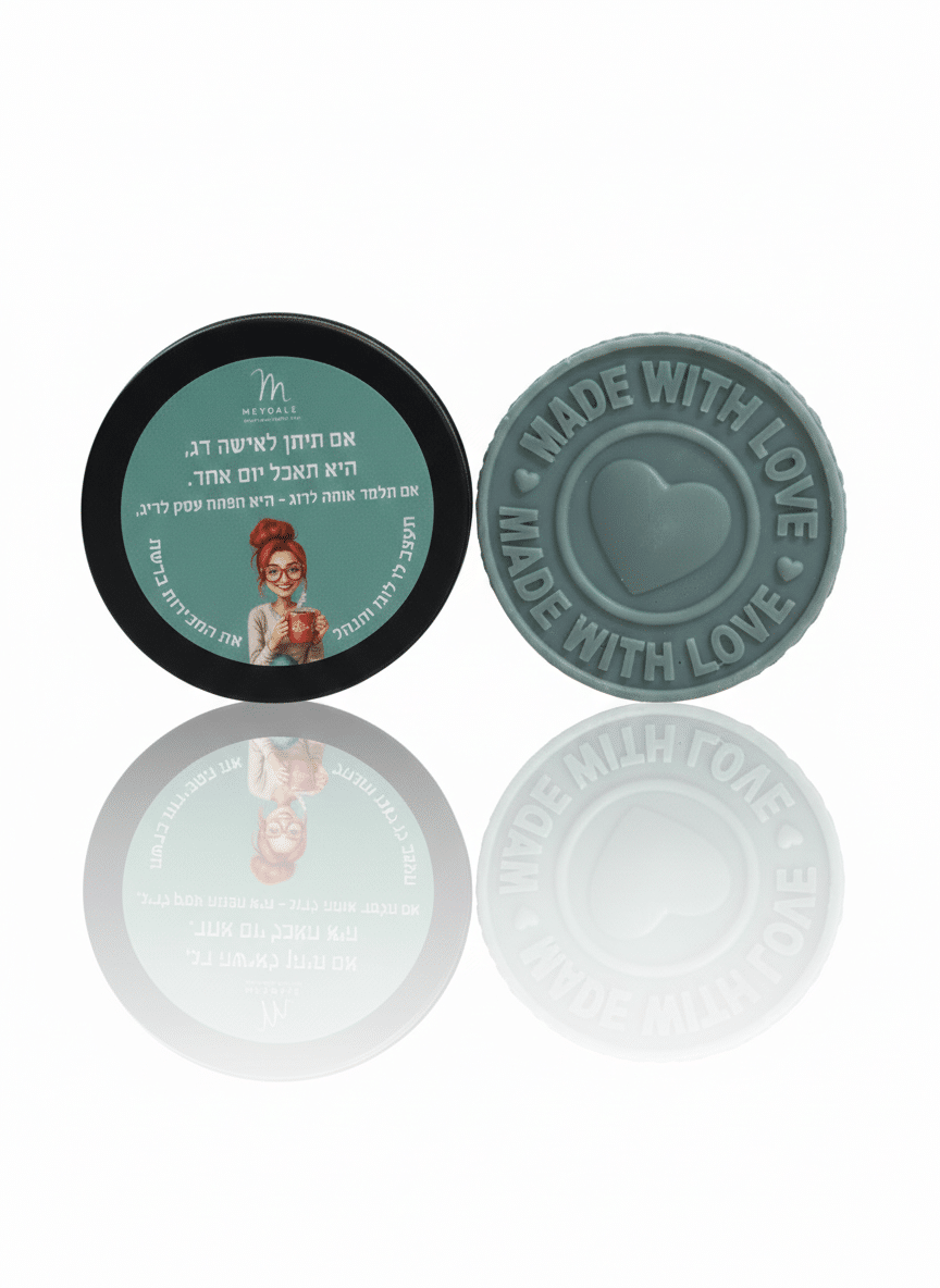 סבון רחצה מוצק מבושם שמגיע בתוך פחית מתכת מעוצבת (צבע הפחית יכול להשתנה )